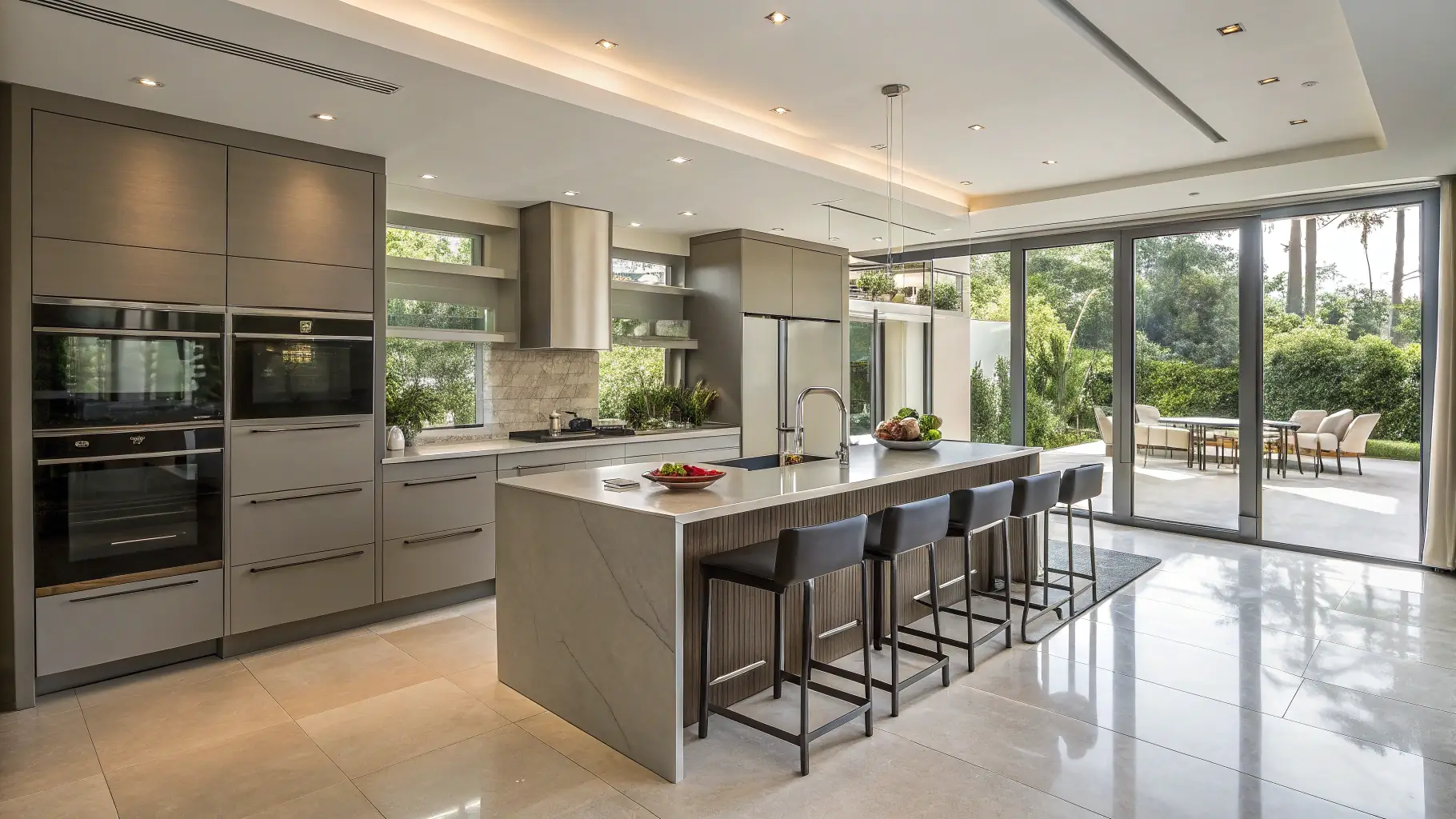 This project features a sleek and modern kitchen design with an open layout, perfect for family gatherings and entertaining. The use of stainless steel appliances and contemporary finishes creates a welcoming atmosphere for both cooking and socializing.